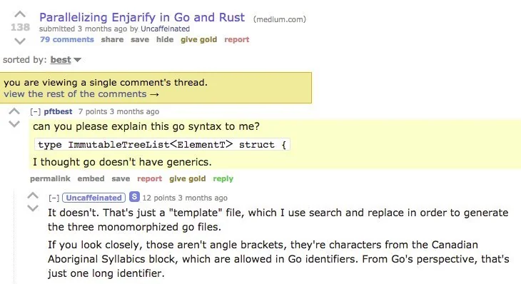 There's a Reddit post from before Go introduced generics that I appreciate a lot: